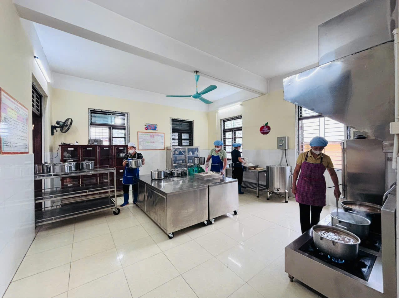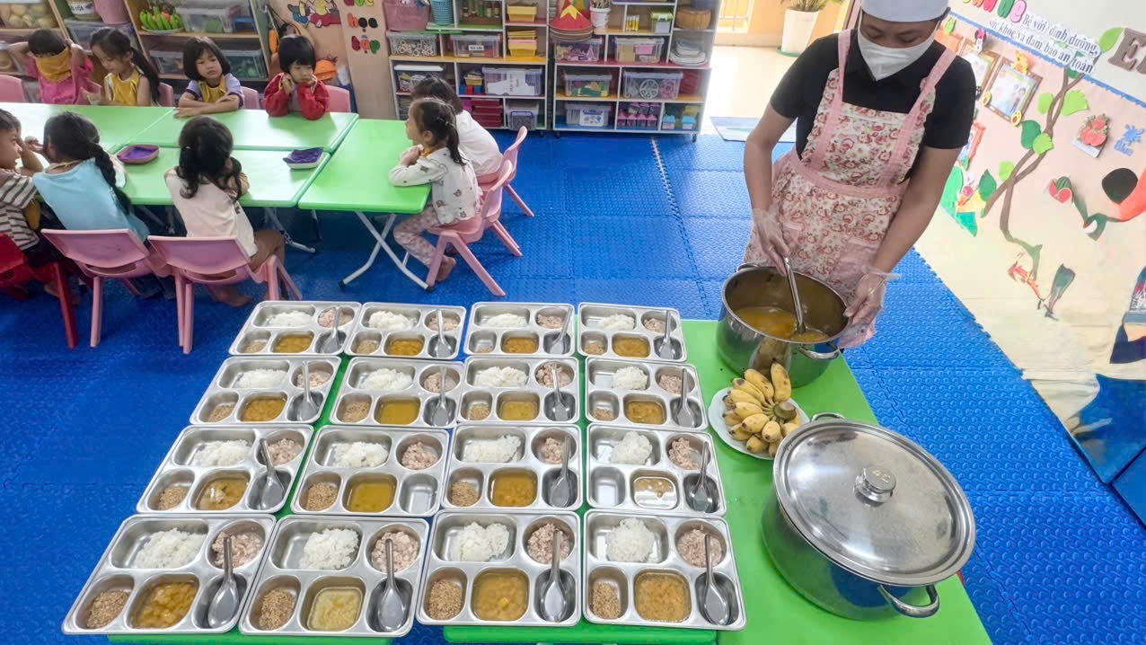 Trong quá trình chế biến, đội ngũ cấp dưỡng luôn tuân thủ nghiêm ngặt quy trình bếp ăn một chiều, đảm bảo vệ sinh và dinh dưỡng. Các món ăn được chế biến không chỉ đảm bảo đầy đủ chất dinh dưỡng mà còn được trình bày đẹp mắt, hấp dẫn, phù hợp với khẩu vị của trẻ. Nhờ đó, trẻ ăn ngon miệng hơn, phát triển tốt hơn.