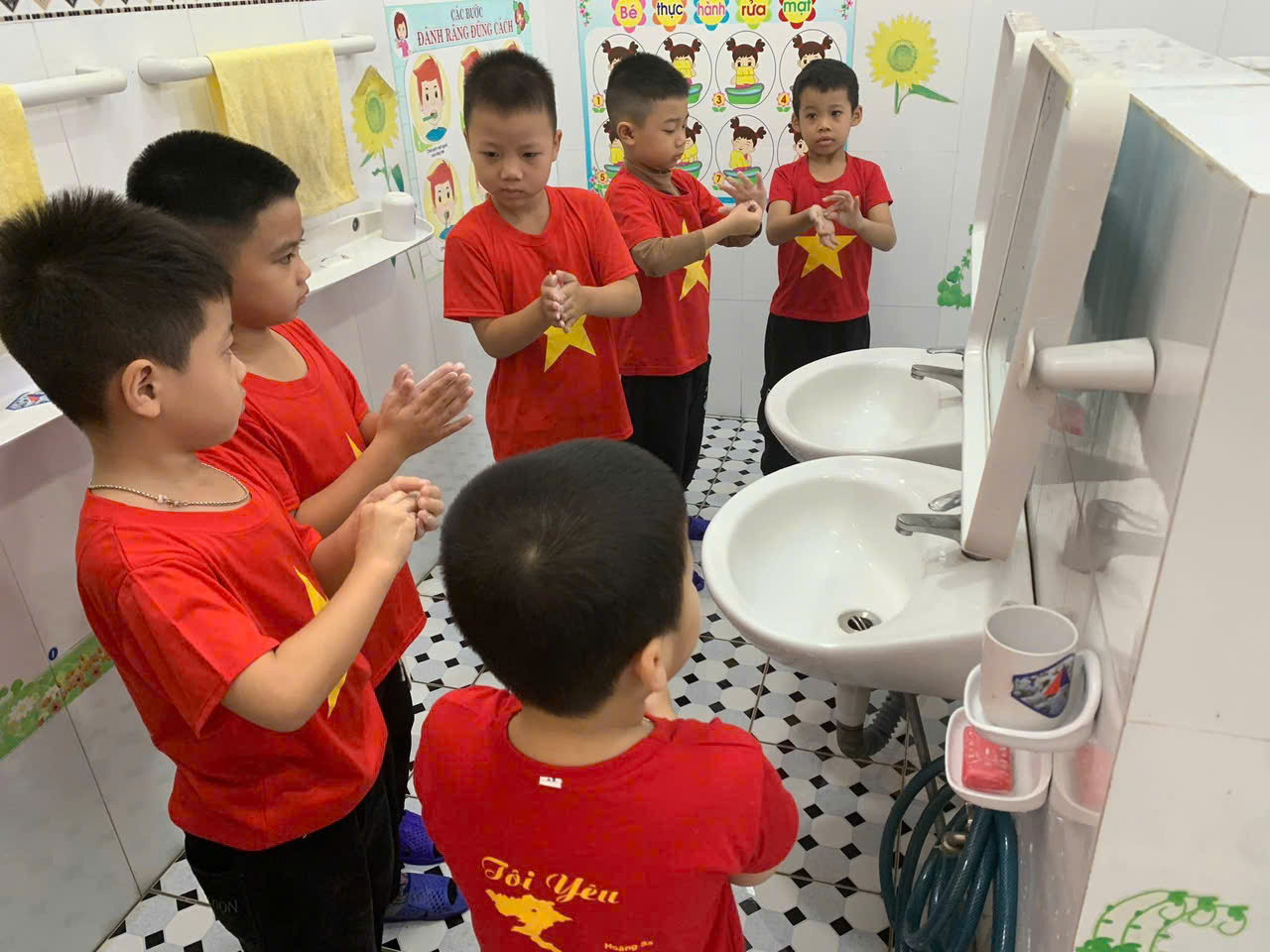 Hình ảnh: Trẻ vệ sinh cá nhân trước giờ ăn