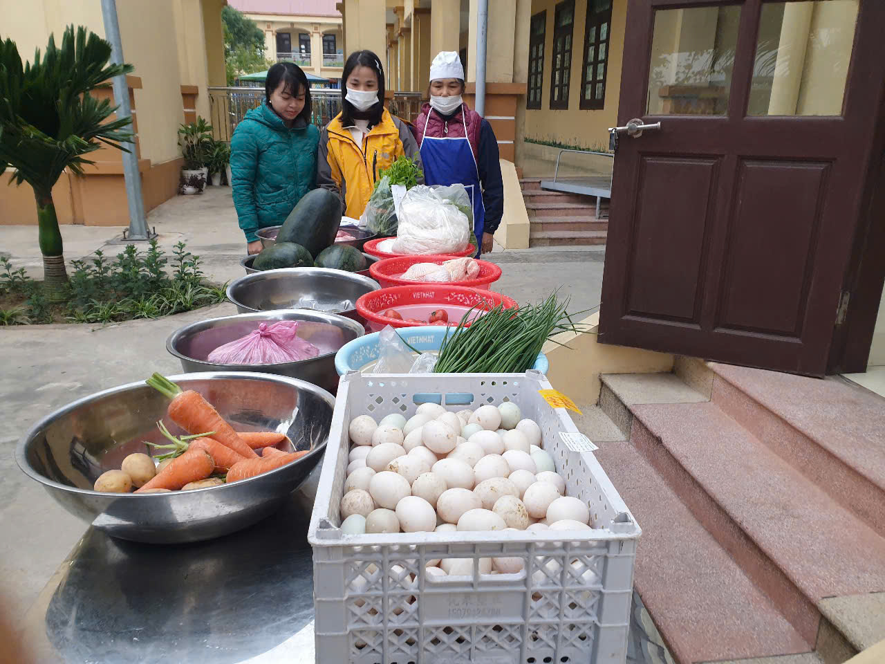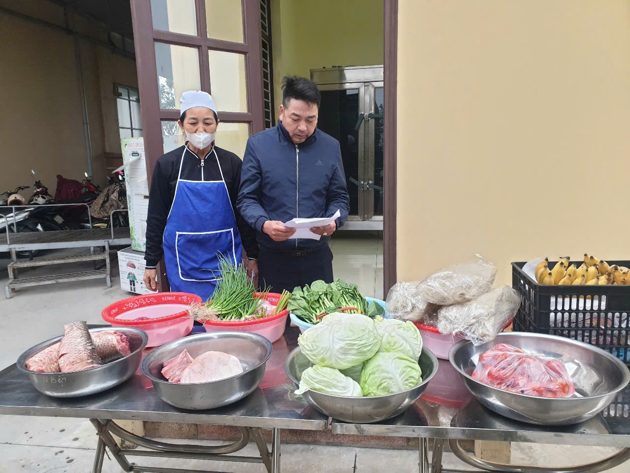 Hình ảnh: Cha mẹ trẻ kiểm tra công tác giao nhận thực phẩm tươi sống tại trường