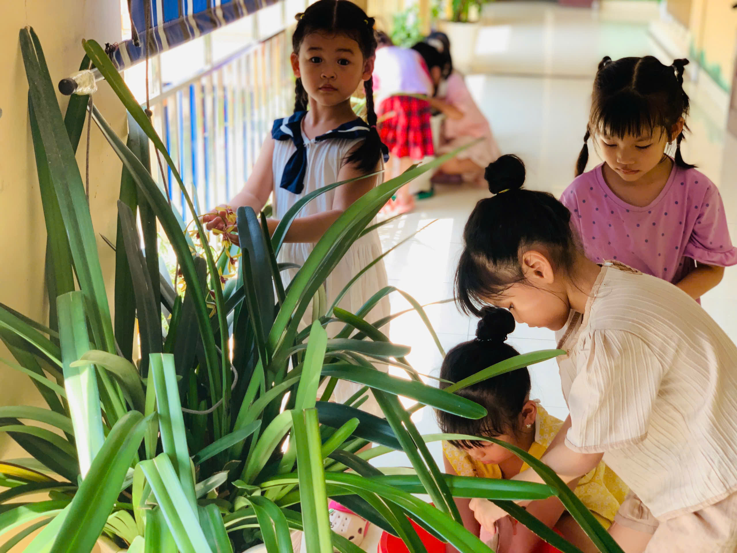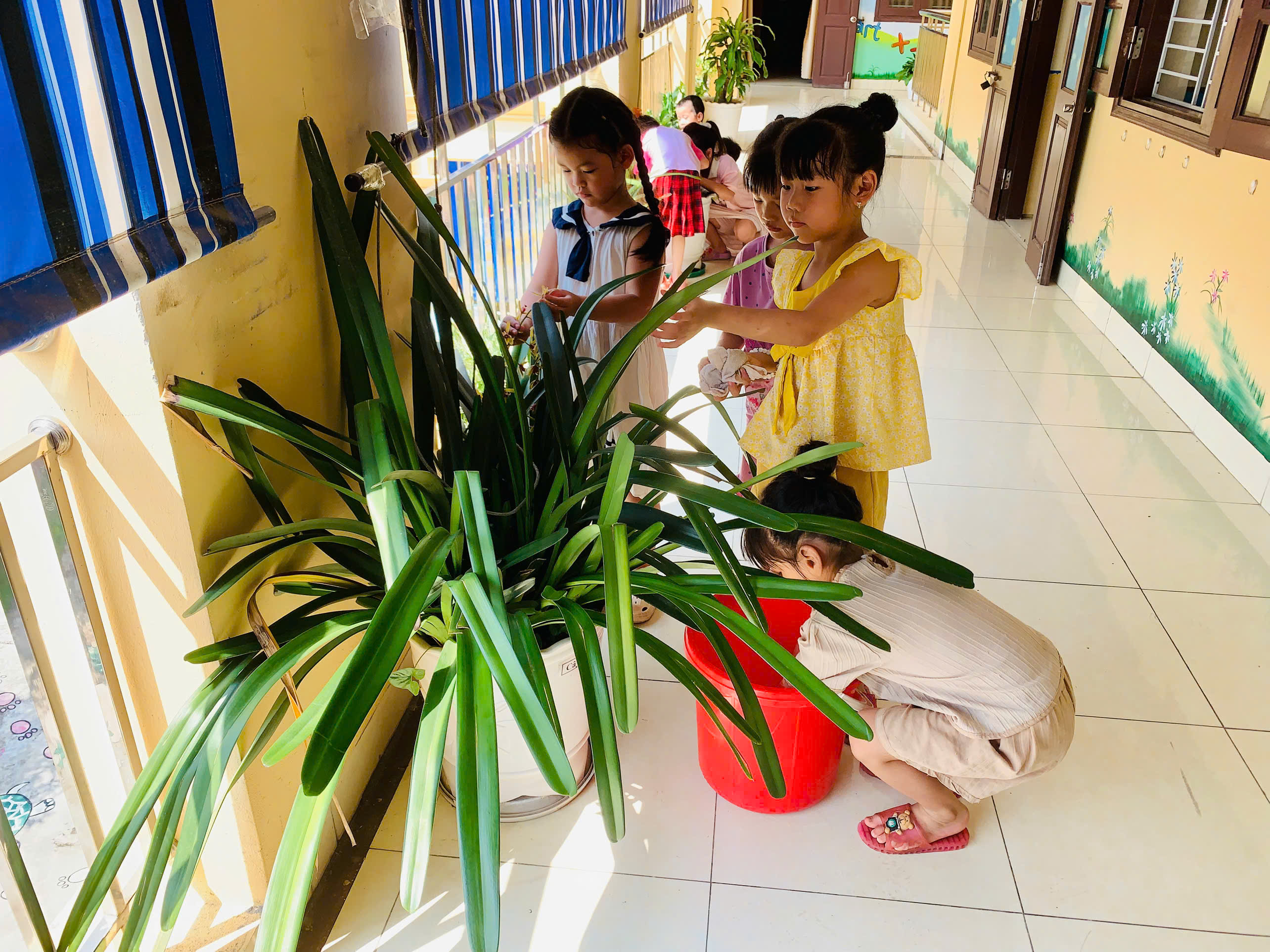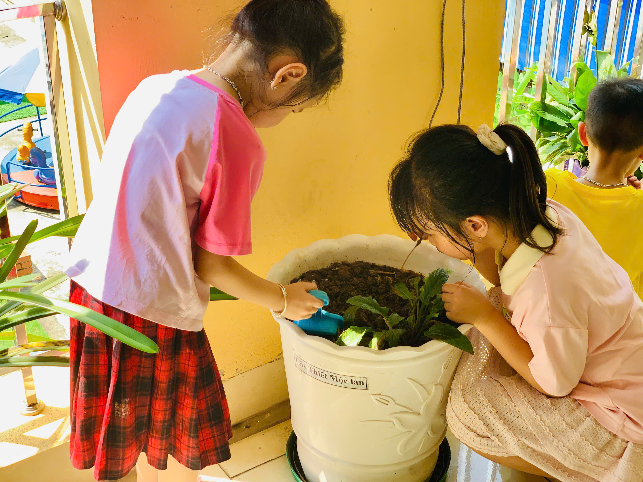 Không chỉ vậy, quá trình quan sát và trò chuyện về cây cối, hoa lá tại Góc Thiên nhiên còn tạo điều kiện để trẻ phát triển ngôn ngữ, mở rộng vốn từ, mạnh dạn bày tỏ suy nghĩ và cảm xúc của bản thân, qua đó nâng cao khả năng giao tiếp và sự tự tin trong sinh hoạt hằng ngày.