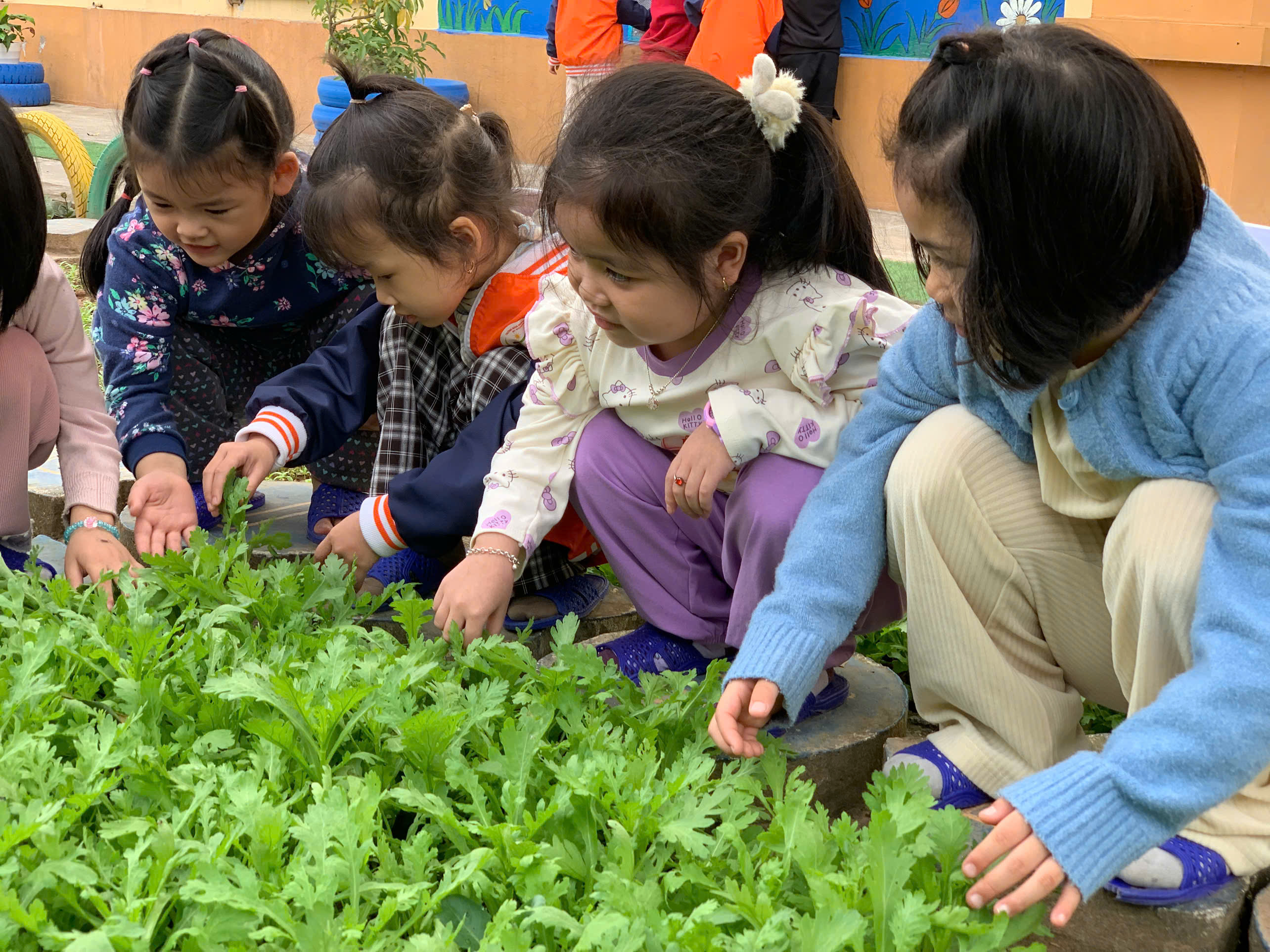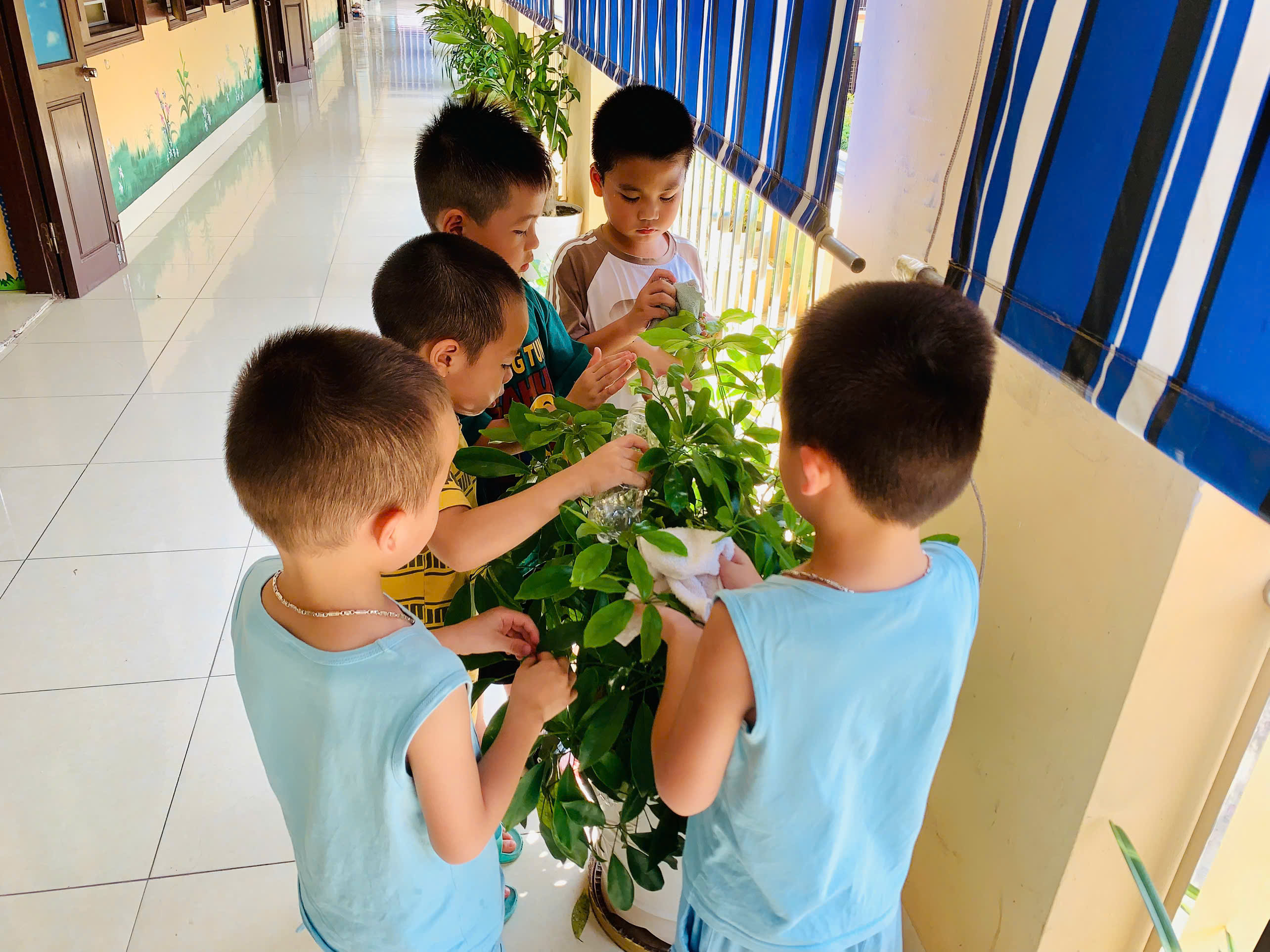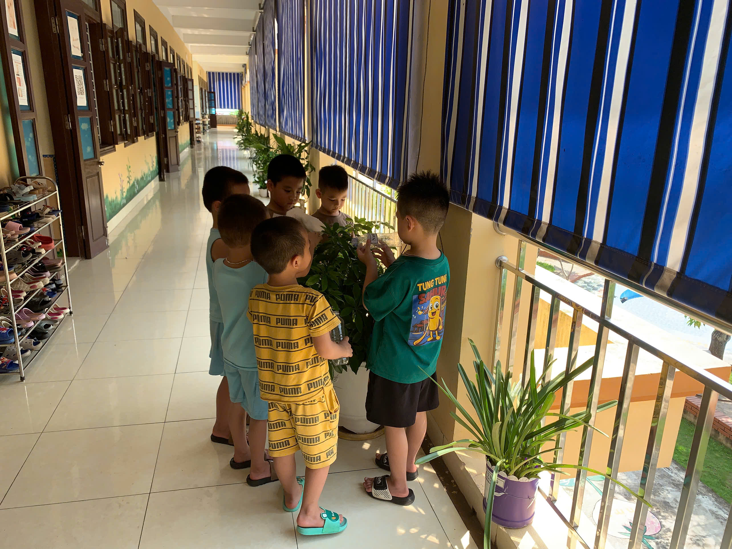 Không chỉ vậy, quá trình quan sát và trò chuyện về cây cối, hoa lá tại Góc Thiên nhiên còn tạo điều kiện để trẻ phát triển ngôn ngữ, mở rộng vốn từ, mạnh dạn bày tỏ suy nghĩ và cảm xúc của bản thân, qua đó nâng cao khả năng giao tiếp và sự tự tin trong sinh hoạt hằng ngày.