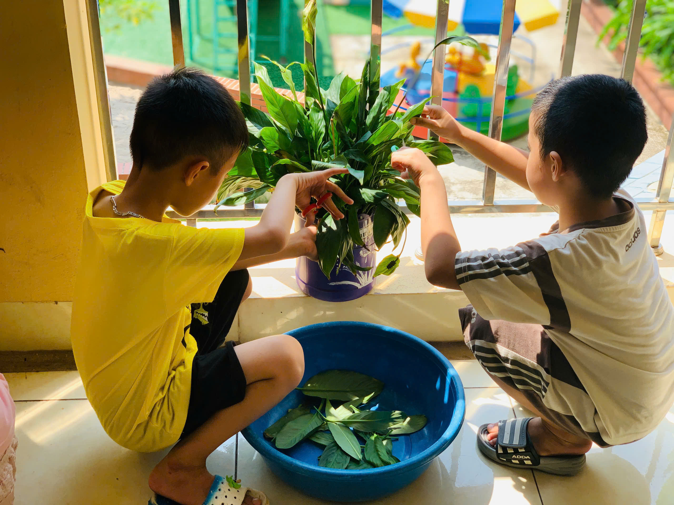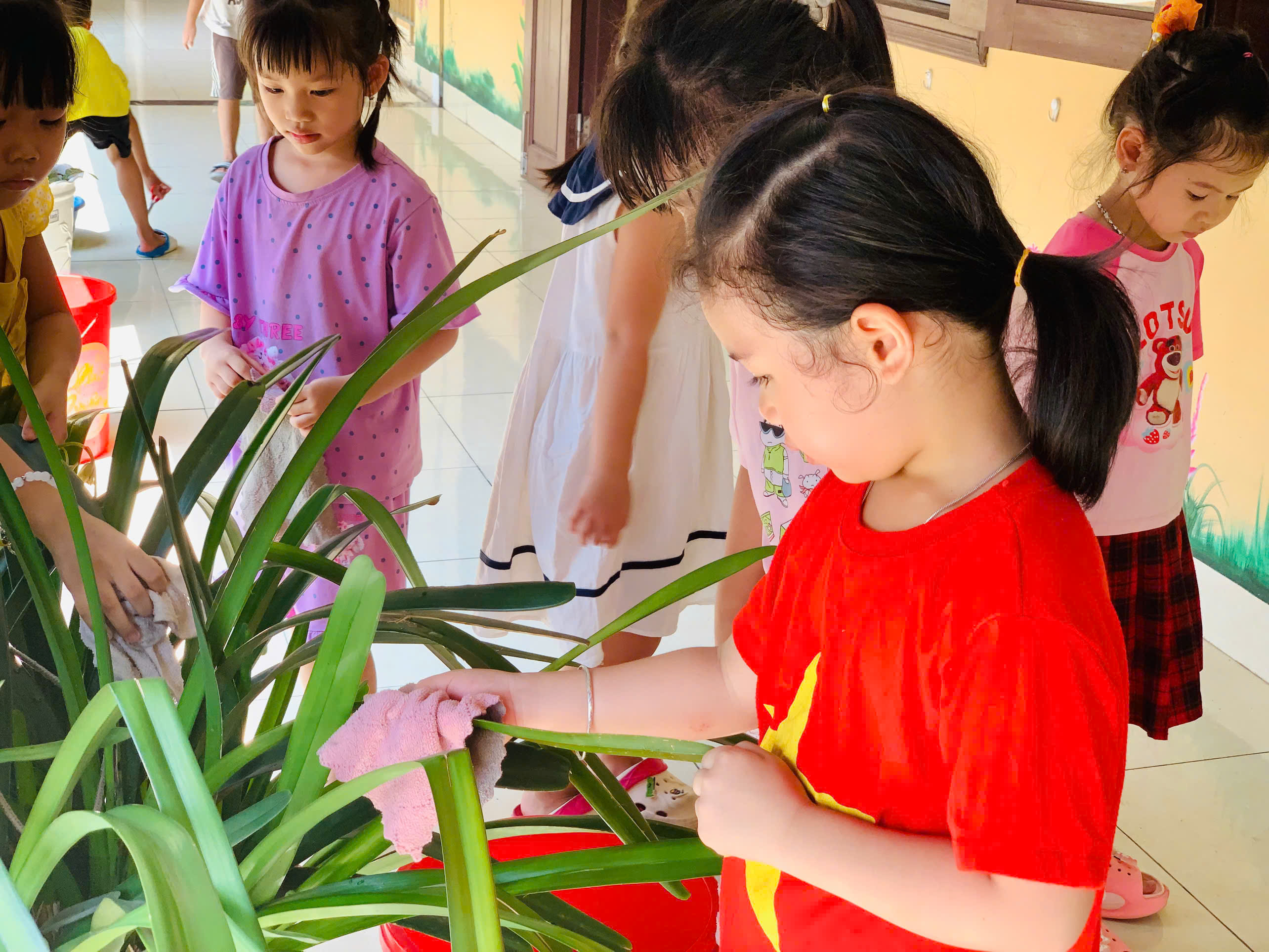 Bên cạnh đó, việc trực tiếp tham gia tưới cây, gieo hạt, nhổ cỏ hay lau lá còn giúp trẻ rèn luyện tính kiên trì, cẩn thận và tinh thần trách nhiệm, đồng thời hình thành cho trẻ những kỹ năng sống cần thiết như biết giữ gìn môi trường, biết quý trọng thành quả lao động và biết hợp tác, chia sẻ cùng bạn bè trong các hoạt động chung. Mỗi hành động nhỏ tại Góc Thiên nhiên đều góp phần nuôi dưỡng ở trẻ ý thức tự lập và thói quen lao động phù hợp với lứa tuổi.