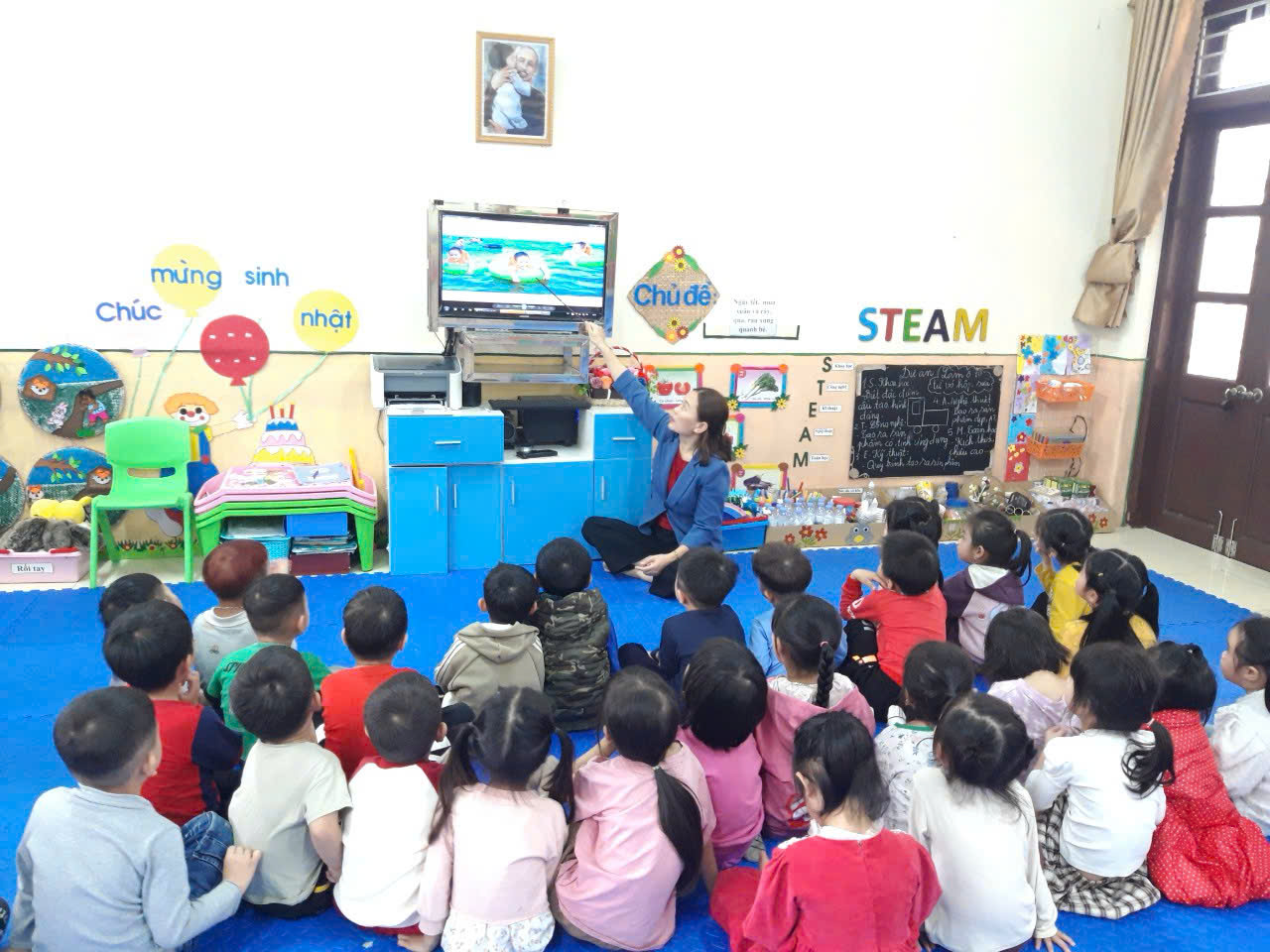 Cô giáo cũng thường xuyên giáo dục trẻ thông qua các hoạt động học và vui chơi về kỹ năng phòng tránh tai nạn thương tích, trong đó có kỹ năng phòng chống đuối nước, nhằm giúp trẻ có thêm kiến thức và kỹ năng cần thiết để tự bảo vệ bản thân.