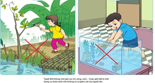 Bên cạnh đó, phụ huynh cần giáo dục trẻ một số kỹ năng an toàn như: Không xô đẩy bạn khi chơi gần nơi có nước, biết gọi người lớn khi thấy bạn gặp nguy hiểm, không tự ý xuống nước khi chưa được phép. Khi cho trẻ đi chơi hoặc về quê, phụ huynh cần luôn để mắt tới trẻ, không để trẻ rời khỏi tầm quan sát.